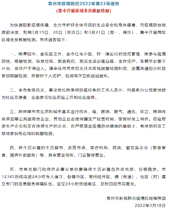 3月18日,銅陵市新冠肺炎疫情防控應急綜合指揮部凌晨通報:6時起,銅官區(qū)、義安區(qū)、郊區(qū)實行管控措施:城市小區(qū)實行封閉管理;除批準的企業(yè)其他一律停工停產;除批準外經營場所暫停營業(yè)。