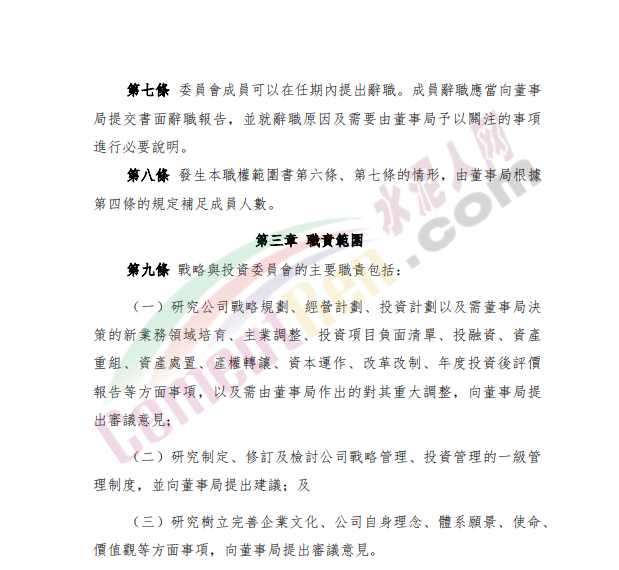 華潤(rùn)水泥控股公布,自2022年3月18日起,董事局成立戰(zhàn)略與投資委員會(huì),撤銷執(zhí)行委員會(huì),薪酬委員會(huì)更名為薪酬與考核委員會(huì),企業(yè)管治委員會(huì)更名為風(fēng)險(xiǎn)與合規(guī)委員會(huì)。