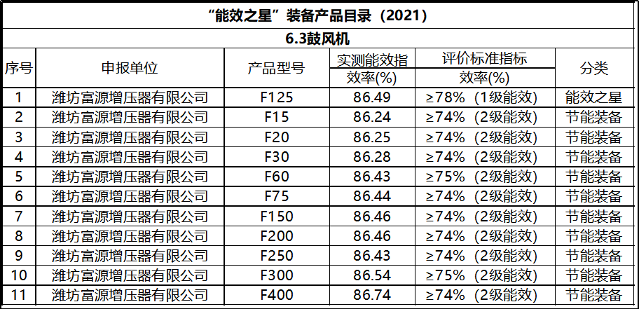 與此同時(shí),濰坊富源增壓器有限公司(以下簡稱“濰坊富源”)自主研發(fā)的的12款型號空氣懸浮鼓風(fēng)機(jī)作為《國家工業(yè)節(jié)能裝備及“能效之星”裝備產(chǎn)品目錄(2021)》的入圍者,一時(shí)間在水泥行業(yè)名聲大噪。