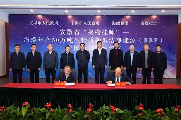 2022年3月26日,海螺投資與寧國市政府在寧國水泥廠簽署了年產(chǎn)30萬噸生物質(zhì)新型潔凈能源(BBF)項目協(xié)議。