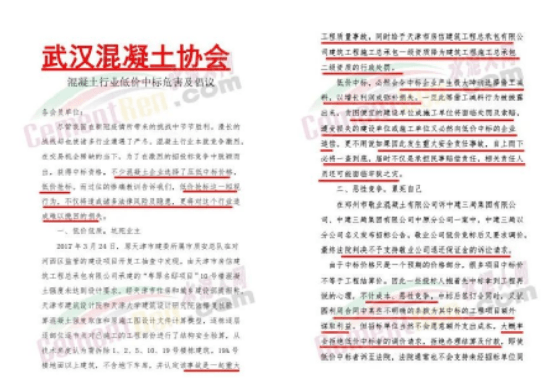 繼上述風(fēng)險提示函之后,武漢混凝土協(xié)會再發(fā)長文倡議混凝土在交易機(jī)會稀缺的當(dāng)下,堅決抵制混凝土行業(yè)的低價搶標(biāo)、低價中標(biāo)行為,嚴(yán)格執(zhí)行行業(yè)自律公約,杜絕低于生產(chǎn)和經(jīng)營成本價的惡性竟?fàn)?,?yán)控安全質(zhì)量底線,特別是在原材料有效供給不足的情況下,更要嚴(yán)把原材料質(zhì)量關(guān),杜絕以犧牲質(zhì)量換取利潤空間的行為。