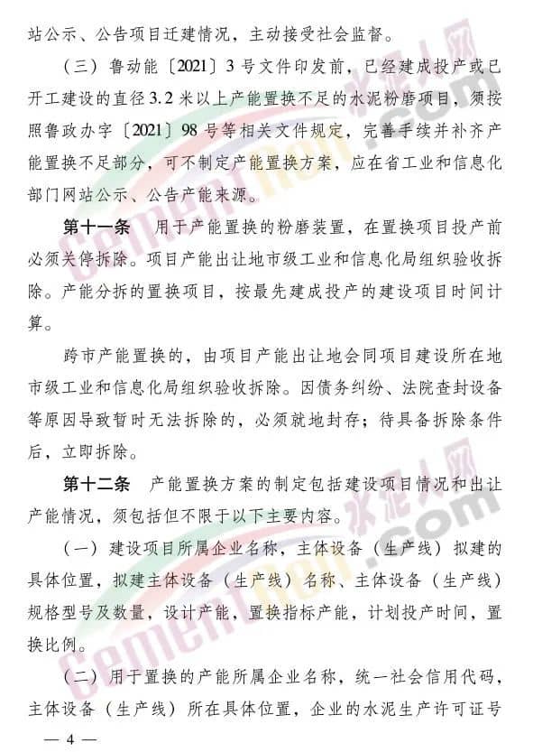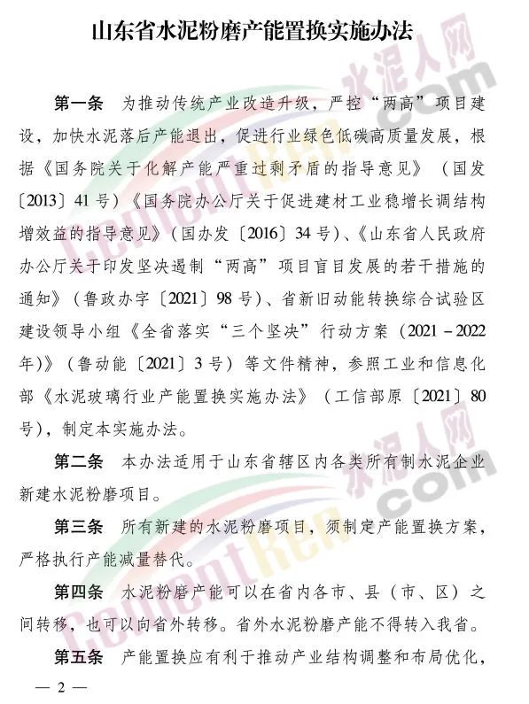 2022年3月29日,山東省工業(yè)和信息化廳發(fā)布了《山東省水泥粉磨產(chǎn)能置換實施辦法》,要求: