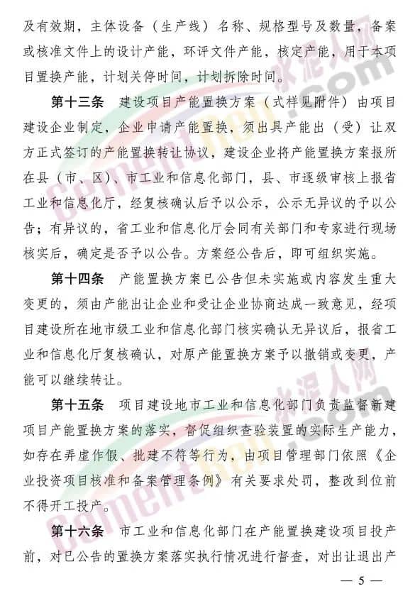新建水泥粉磨項目,產(chǎn)能置換比例為2:1,每建設(shè)1噸產(chǎn)能須關(guān)閉退出2噸產(chǎn)能。