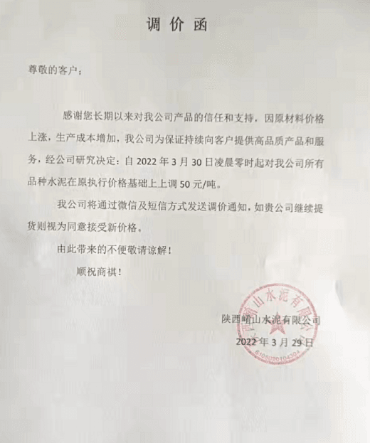 近期眾多水泥廠發(fā)函稱,因原燃材料價格上漲,導(dǎo)致企業(yè)生產(chǎn)成本增加。也有企業(yè)明確表示燃煤、電費以及運輸費用的上漲是導(dǎo)致企業(yè)成本增加的主要原因。