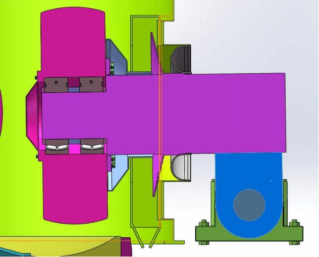 1. 在磨輥下方,對原有風(fēng)環(huán)進(jìn)行切割,制作料槽,料槽的高度3公分,寬度10公分,只要確保料的正常流出,增加導(dǎo)流板,確保在運行過程中物料不沖刷磨輥對磨輥起到保護(hù)的作用;