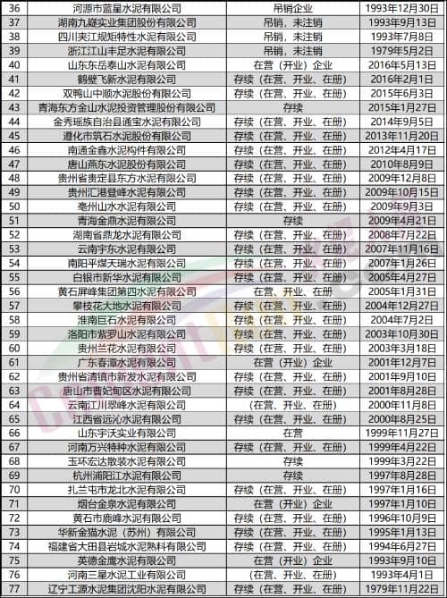 據(jù)水泥人網(wǎng)不完全統(tǒng)計(jì),截止目前被列入嚴(yán)重違法失信企業(yè)名單中包括70家水泥行業(yè)企業(yè),而被列入經(jīng)營異常的水泥廠也達(dá)到77家,被行政處罰的達(dá)99家,共計(jì)246家水泥廠。且有部分企業(yè)連續(xù)多年因被列入經(jīng)營異常名錄屆滿3年仍未履行相關(guān)義務(wù)而持續(xù)被列入嚴(yán)重違法失信企業(yè)名單。