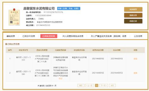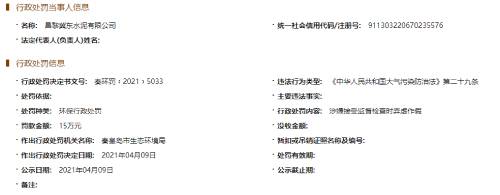 昌黎冀東水泥有限公司因涉嫌不正常運(yùn)行大氣污染防治設(shè)施通過逃避監(jiān)管的方式排放大氣污染物,涉嫌接受監(jiān)督檢查時(shí)弄虛作假,在2021年4月9日被秦皇島市生態(tài)環(huán)境局處罰。