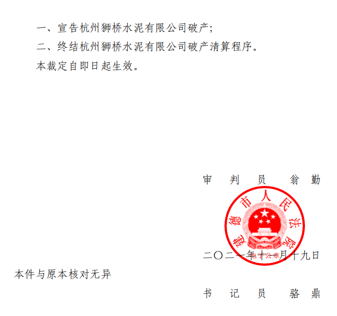 杭州獅橋水泥有限公司破產(chǎn)清算