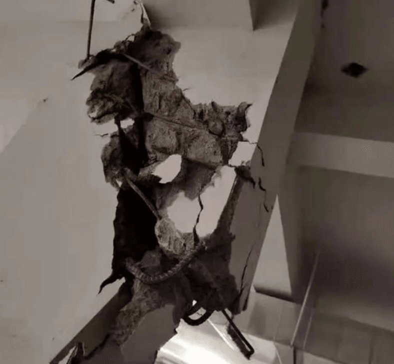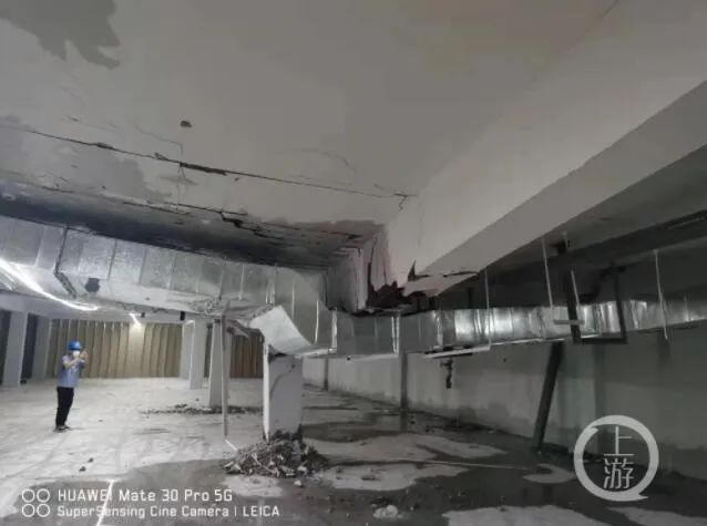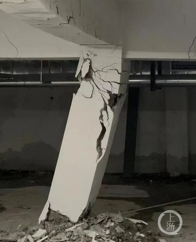 ▲除了立柱,地下室的橫梁也出現(xiàn)了嚴(yán)重的斷裂。圖片來(lái)源/受訪者供圖
