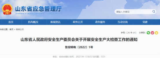 山東省自即日起至2022年12月31日在全省范圍內(nèi)開展安全生產(chǎn)大檢查