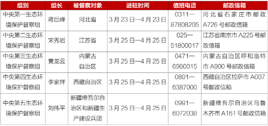 中央環(huán)保督查組于3月23日至25日進駐五個地區(qū)開展督察