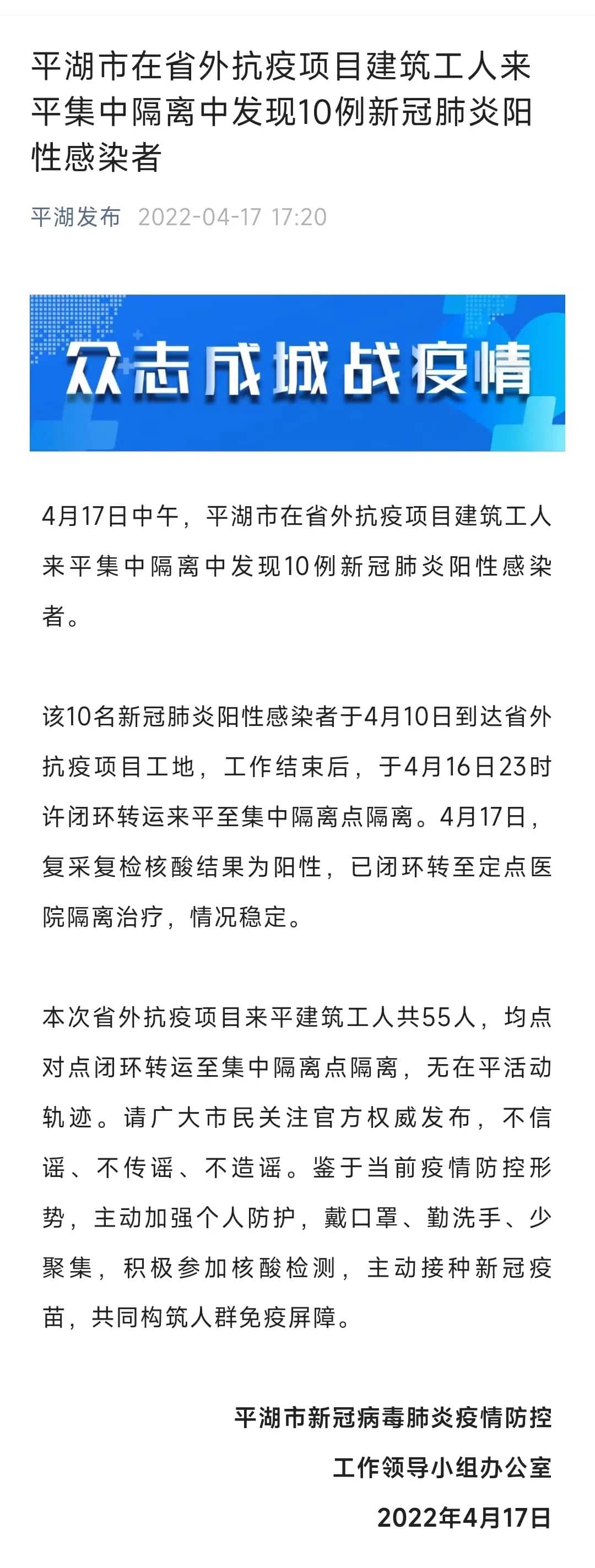 本次省外抗疫項(xiàng)目來平建筑工人共55人,均點(diǎn)對點(diǎn)閉環(huán)轉(zhuǎn)運(yùn)至集中隔離點(diǎn)隔離,無在平活動軌跡。請廣大市民關(guān)注官方權(quán)威發(fā)布,不信謠、不傳謠、不造謠。鑒于當(dāng)前疫情防控形勢,主動加強(qiáng)個人防護(hù),戴口罩、勤洗手、少聚集,積極參加核酸檢測,主動接種新冠疫苗,共同構(gòu)筑人群免疫屏障。