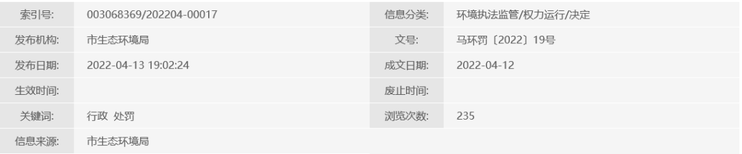 我局于2022年3月30日以《行政處罰事先(聽證)告知書》(馬環(huán)罰告〔2022〕15號(hào))告知你公司違法事實(shí)、處罰依據(jù)和擬作出的處罰決定,并告知你公司有權(quán)進(jìn)行陳述、申辯和要求聽證。你公司在規(guī)定期限內(nèi)未提出陳述申辯意見,未提出聽證申請(qǐng)。