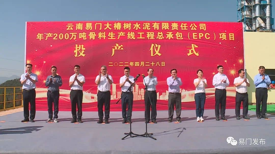 縣委書記王華宣布云南易門大椿樹(shù)水泥有限責(zé)任公司年產(chǎn)200萬(wàn)噸骨料生產(chǎn)線項(xiàng)目正式投產(chǎn)。