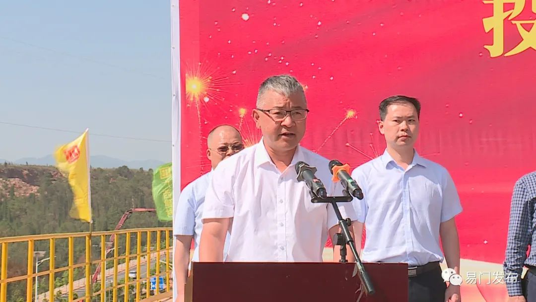 縣委副書記、縣長(zhǎng)張洪坤在投產(chǎn)儀式上講話。