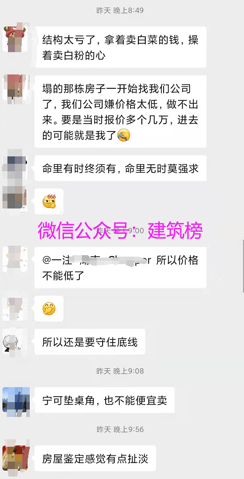 據(jù)知情人爆料,他們單位差點(diǎn)接了這個(gè)活,后來因?yàn)樵摲课莸膱?bào)價(jià)極低,所以沒接。還有網(wǎng)友爆料說:該房屋的鑒定報(bào)告報(bào)價(jià)是1000,所以沒人接,后來多少錢成交的不確定。