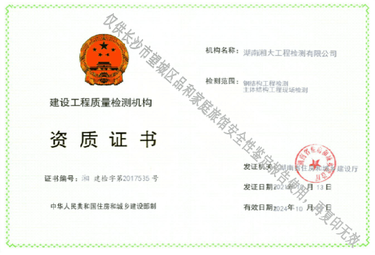 經(jīng)查,2022年4月13日,湖南湘大工程檢測(cè)有限公司(法人代表:譚某,公司性質(zhì):私營(yíng),注冊(cè)地:望城區(qū)月亮島街道)對(duì)該自建房家庭旅館(4、5、6樓)進(jìn)行房屋安全鑒定后出具虛假房屋安全鑒定報(bào)告,公司法人代表譚某及技術(shù)人員寧某、湯某、劉某、龔某等5人涉嫌提供虛假證明文件罪。