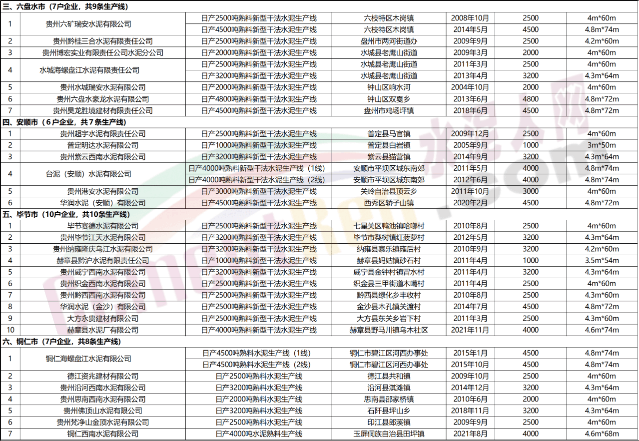 從貴州省工信廳發(fā)布的《2021年度水泥熟料生產(chǎn)線清單》可見貴州省內(nèi)共有水泥熟料生產(chǎn)線94條,合計產(chǎn)能8449.2萬噸。