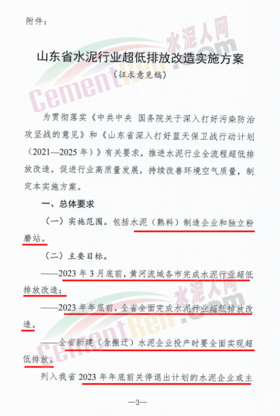 山東全省新建(含搬遷)水泥企業(yè)投產(chǎn)時要全面實現(xiàn)超低排放。列入山東省2023年年底前關(guān)停退出計劃的水泥企業(yè)或主要生產(chǎn)設(shè)施,不再要求實施超低排放改造,但應(yīng)滿足污染物排放標(biāo)準(zhǔn)限值要求,并按時完成產(chǎn)能關(guān)停退出。