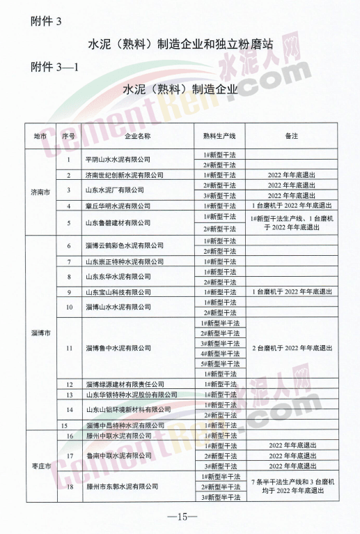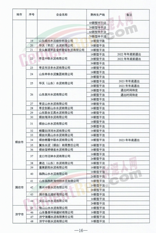 山東泉興水泥有限公司兩條新型干法水泥熟料生產(chǎn)線退出時間標(biāo)注為“待定”。