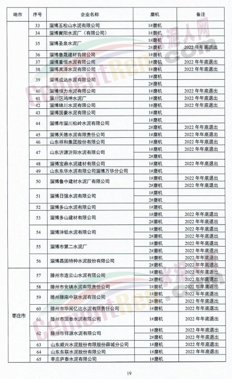 單體粉磨站標(biāo)注為“退出”或“拆除”的共164臺磨機(jī),其中今年底前退出的共156臺,5月份退出的2臺。已退出的4臺磨機(jī)。山東臨朐振龍水泥有限公司1#磨機(jī)標(biāo)注為“已拆除”。曲阜中聯(lián)水泥有限公司泰安分公司l#磨機(jī)標(biāo)注為“退出時間暫不確定”。