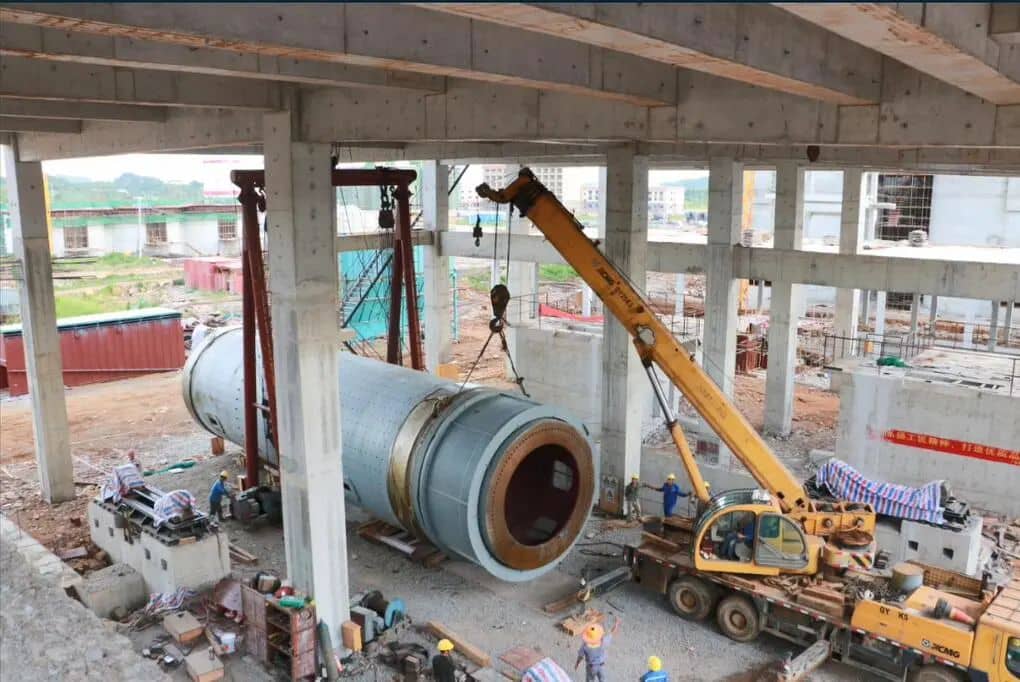 項(xiàng)目從開工之初就面臨著工期緊、任務(wù)重的難題。其中,水泥粉磨機(jī)吊裝施工是項(xiàng)目的一個(gè)重要施工環(huán)節(jié),水泥磨筒體質(zhì)重120噸,由于水泥磨車間空間狹小,大型起重機(jī)械無(wú)法進(jìn)出吊裝,筒體需在車間外卸車,再將筒體移位至車間內(nèi)進(jìn)行安裝,為攻克這個(gè)重點(diǎn)難題,項(xiàng)目青年突擊隊(duì)員第一時(shí)間組織開會(huì),討論解決方案,通過借鑒以往項(xiàng)目的施工經(jīng)驗(yàn),根據(jù)項(xiàng)目實(shí)際情況編制了吊裝施工方案,方案采用滑輪組、卷?yè)P(yáng)機(jī)、龍門架等設(shè)備,組合成一套吊裝系統(tǒng)再采用汽車吊配合吊裝,在吊裝過程中出現(xiàn)了不少問題,隊(duì)員們勇于挑戰(zhàn),迎難而上,經(jīng)過多次試驗(yàn)和十幾天的日夜奮戰(zhàn),最終將兩臺(tái)水泥磨機(jī)成功精準(zhǔn)就位。