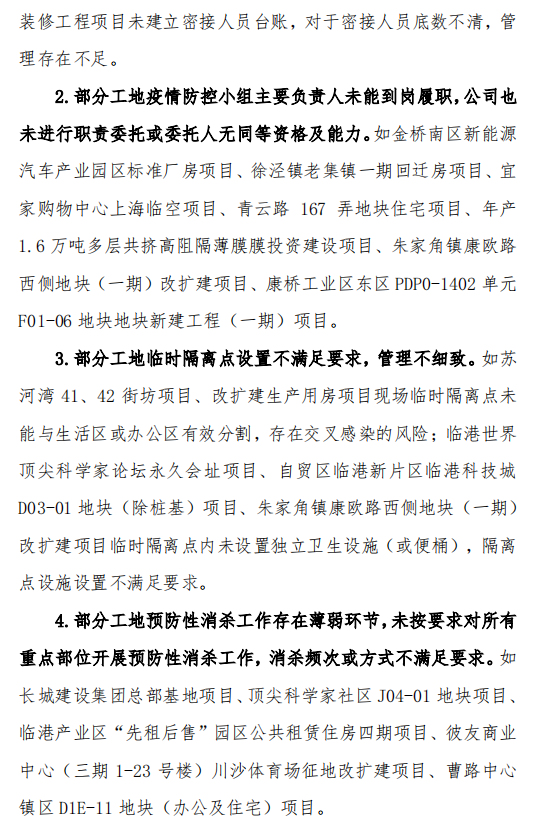 2.部分工地疫情防控小組主要負(fù)責(zé)人未能到崗履職,公司也未進(jìn)行職責(zé)委托或委托人無(wú)同等資格及能力。