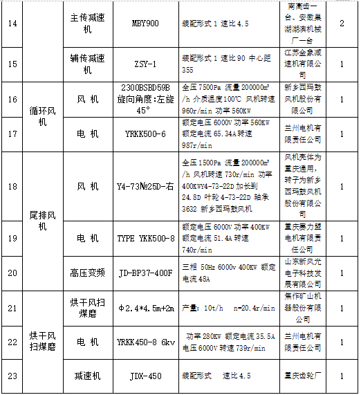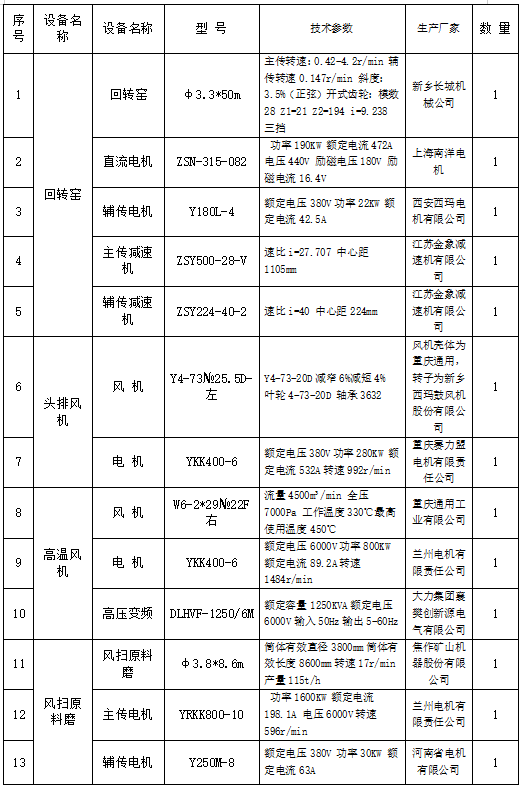 二、泰西水泥東廠主機設(shè)備明細(xì):