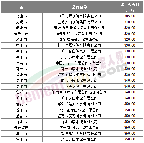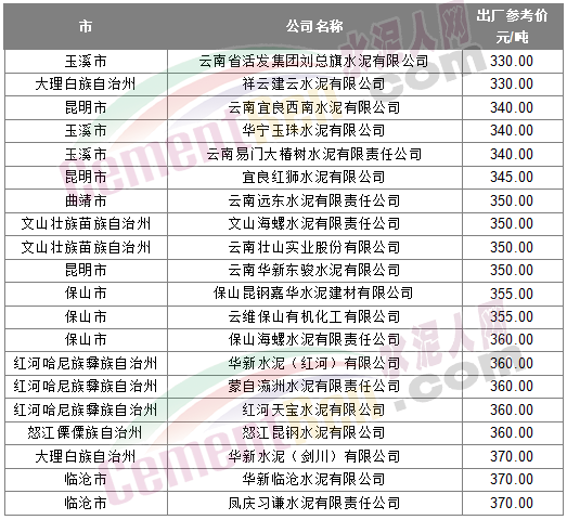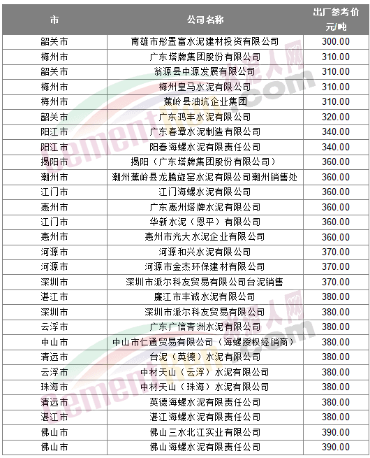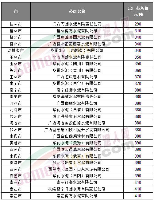 * 上述出廠參考價來源水泥人網(wǎng)信息中心人工采集,僅供參考。如與實際成交不符請以實際成交價格為準。