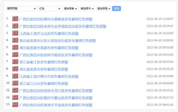 據(jù)水泥人網(wǎng)了解,20日浙江、廣西、江西、湖北等多地發(fā)布暴雨紅色預(yù)警。圖片