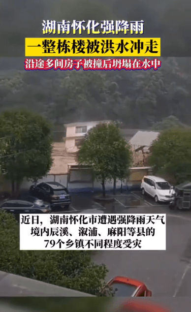 湖南持續(xù)降雨,懷化一棟樓被沖走