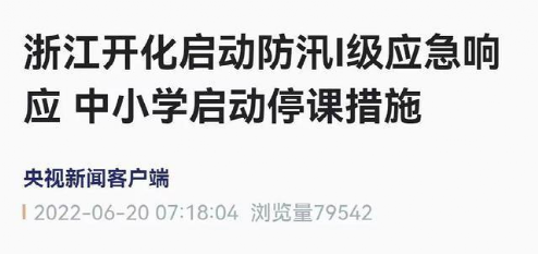 開化縣防汛防旱指揮部、突發(fā)地質(zhì)災(zāi)害應(yīng)急指揮部決定從6月20日6時00分將防汛應(yīng)急響應(yīng)提升為Ⅰ級和維持地質(zhì)災(zāi)害Ⅳ級響應(yīng)。根據(jù)防汛應(yīng)急響應(yīng)I級要求,為保障師生生命安全,全縣中小學(xué)(幼兒園)啟動停課措施,各校立即按照應(yīng)急預(yù)案要求,通知家長告知學(xué)生暫緩來校并全面加強(qiáng)防汛安全教育和監(jiān)管。