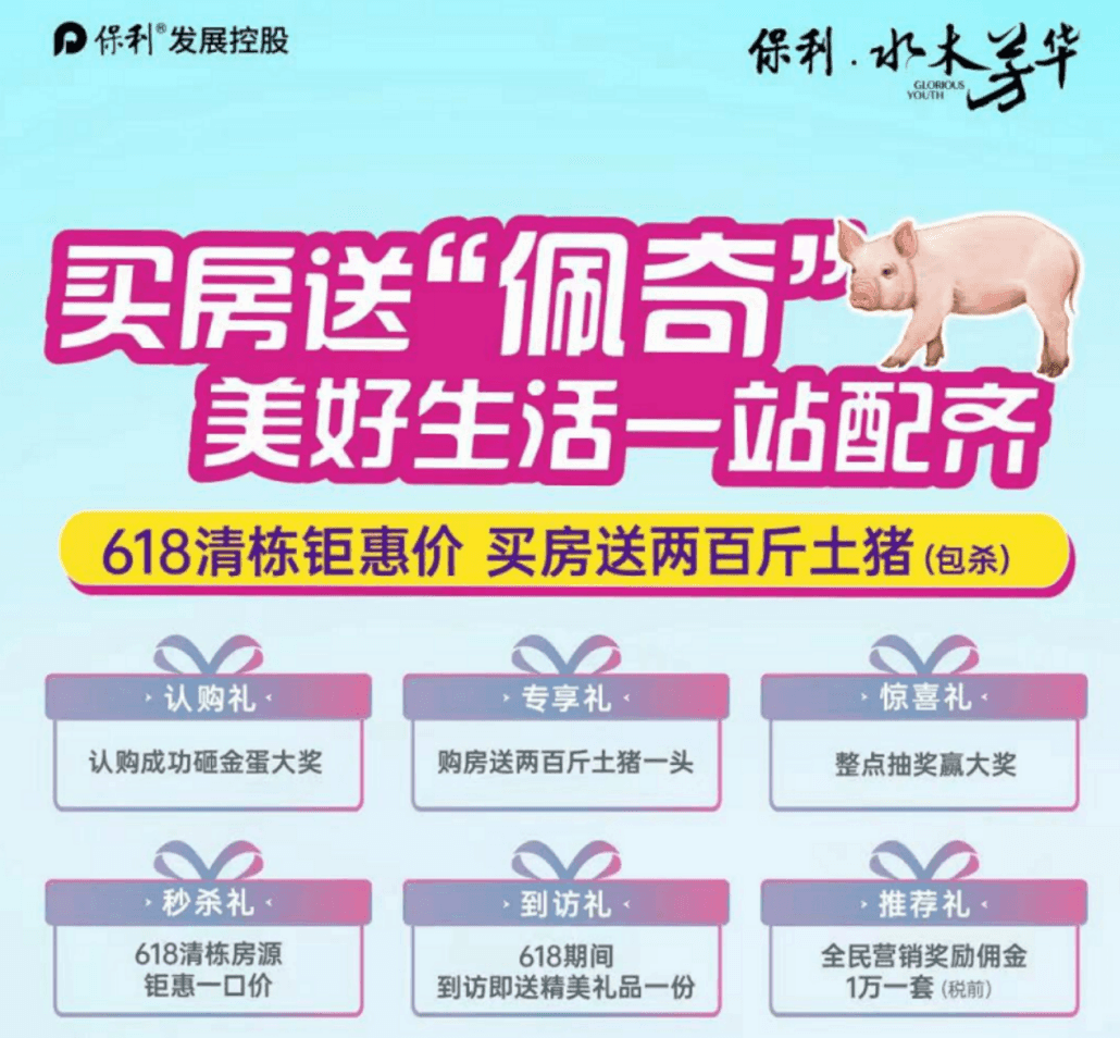 江蘇連云港海州區(qū)保利的一個樓盤推出活動,買房送一只 200 斤的土豬,還包殺。