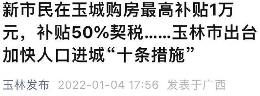 城鎮(zhèn)化是驅(qū)動經(jīng)濟增長的重要方式,農(nóng)民進城,可以增加勞動力供給,促進消費,提升城市用地規(guī)模。所以,相較于一些城市的花樣救市,玉林的政策,不僅僅是在給樓市去庫存?!妒畻l措施》中,既為新市民購房提供了豐富的優(yōu)惠補貼,購買90平方米(含)以下首套新建商品住房,每套補貼6000元,財政補貼50%契稅等等;同時,優(yōu)先向進城購房且未就業(yè)的新市民推薦3個以上就業(yè)崗位,崗位薪酬不低于玉林最低工資標準,可享受一次免費的就業(yè)技能培訓。安排義務教育階段學位。進城購房的新市民其適齡隨遷子女屬于起始年級的,可憑不動產(chǎn)證按照相對就近原則統(tǒng)籌安排到城區(qū)公辦義務教育學校就讀。
