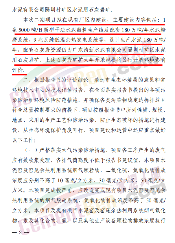 日前,廣東生態(tài)環(huán)境廳發(fā)布《關(guān)于廣東清新水泥有限公司二期日產(chǎn)5000噸新型干法水泥熟料生產(chǎn)線工程項(xiàng)目環(huán)境影響評價文件審批的公告》提到廣東清新水泥有限公司報批的《廣東清新水泥有限公司二期日產(chǎn) 5000 噸新型干法水泥熟料生產(chǎn)線工程項(xiàng)目環(huán)境影響報告書》(以下簡稱報告書)等材料收悉。