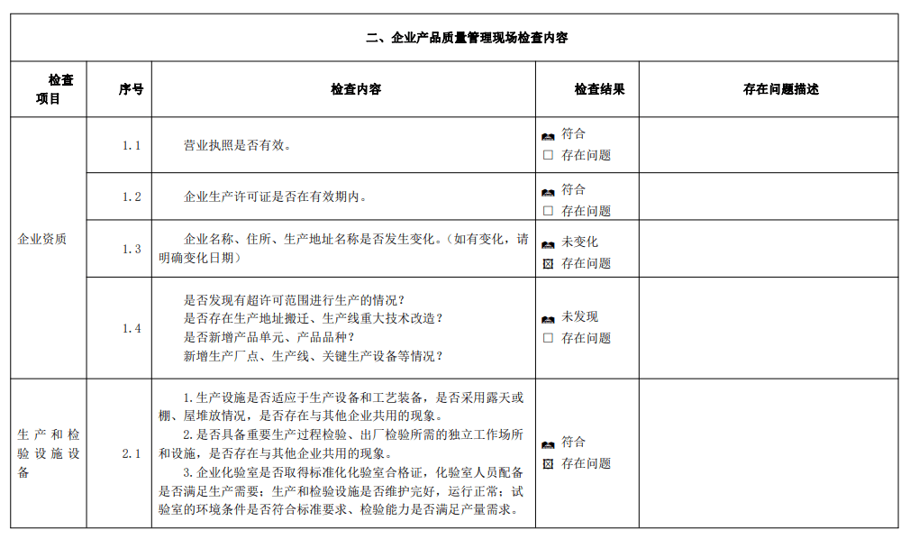 注:因篇幅有限,此處僅例出兩家企業(yè)現(xiàn)場(chǎng)檢查表,其他企業(yè)檢查表請(qǐng)點(diǎn)擊下方“閱讀原文”下載查詢。
