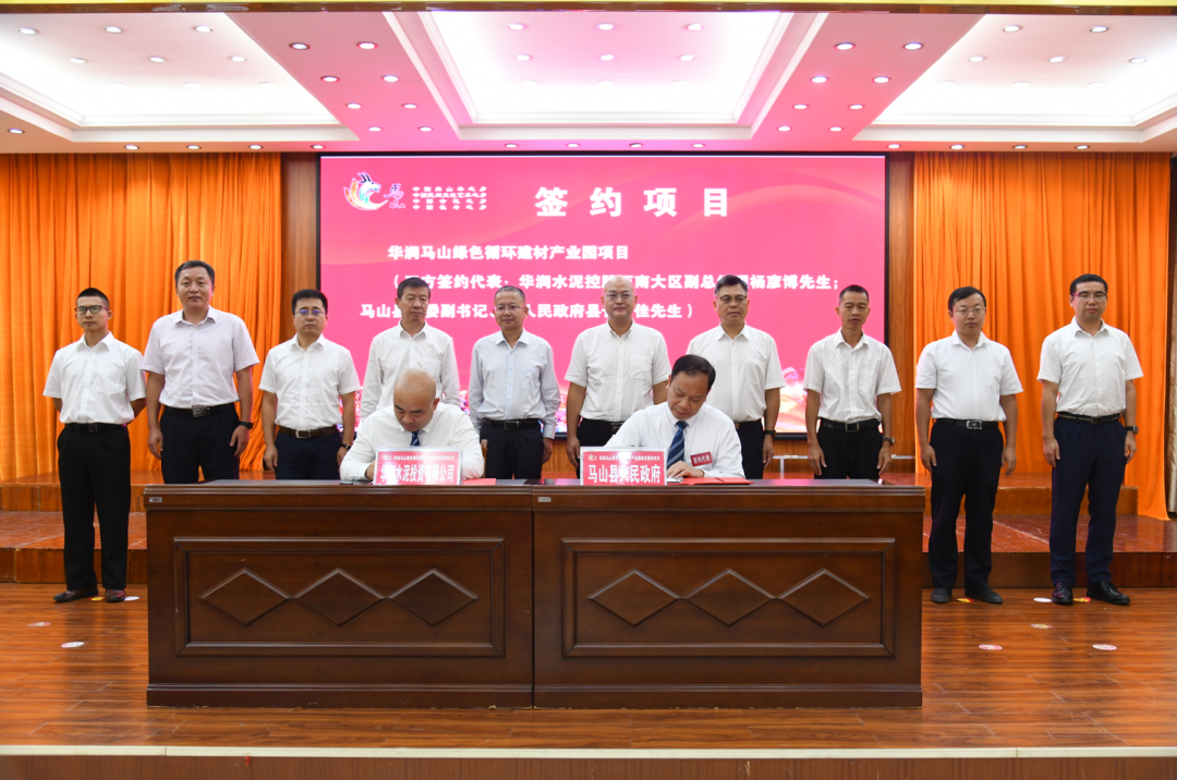 7月18日,華潤馬山綠色循環(huán)建材產(chǎn)業(yè)園投資協(xié)議簽約儀式在廣西南寧馬山縣政府會議室順利舉行。馬山縣委書記穆賢清,縣人大常委會主任許安健,縣政協(xié)主席羅鋒,縣委常委、副縣長彭功茂,華潤水泥西南大區(qū)總經(jīng)理彭方清,華潤電力、華潤燃氣、華潤五豐等業(yè)務(wù)單元在桂業(yè)務(wù)負責人參加儀式并見證簽約。馬山縣長韋佳,華潤水泥西南大區(qū)副總經(jīng)理楊彥博代表雙方簽約。