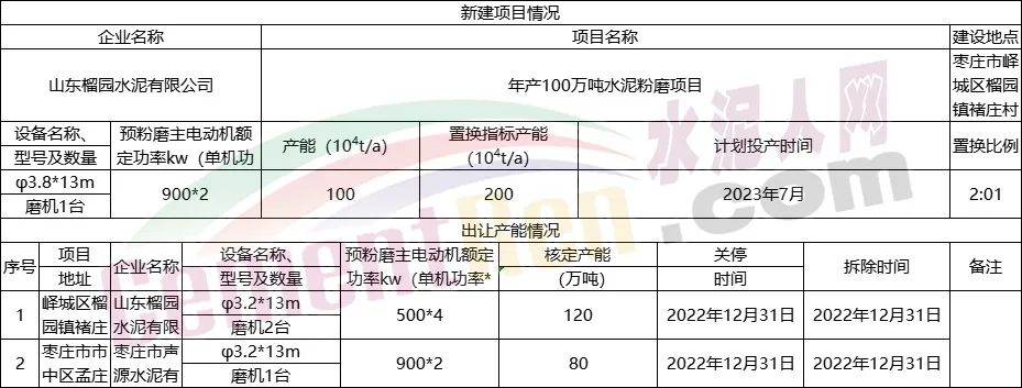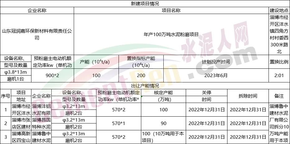 年產(chǎn)100萬(wàn)噸水泥粉磨項(xiàng)目產(chǎn)能置換情況表