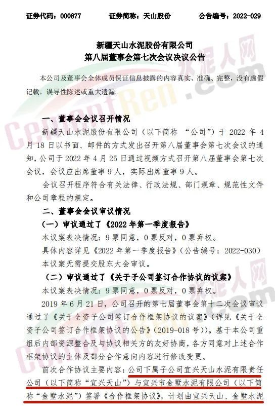 據(jù)水泥人網(wǎng)此前消息,4月25日天山股份發(fā)布第八屆董事會(huì)第七次會(huì)議決議公告,審議通過了《關(guān)于子公司簽訂合作協(xié)議的議案》。