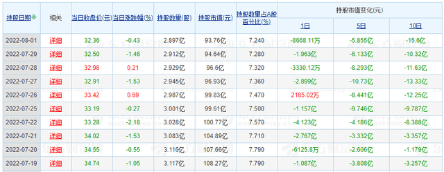 最近10個交易日,北向資金的持股數(shù)量持續(xù)在減少,由3.117億股減少至2.897億股。再結(jié)合海螺水泥一季度披露的股東數(shù)據(jù)可以看出,在二季度里,北向資金就在減倉了。