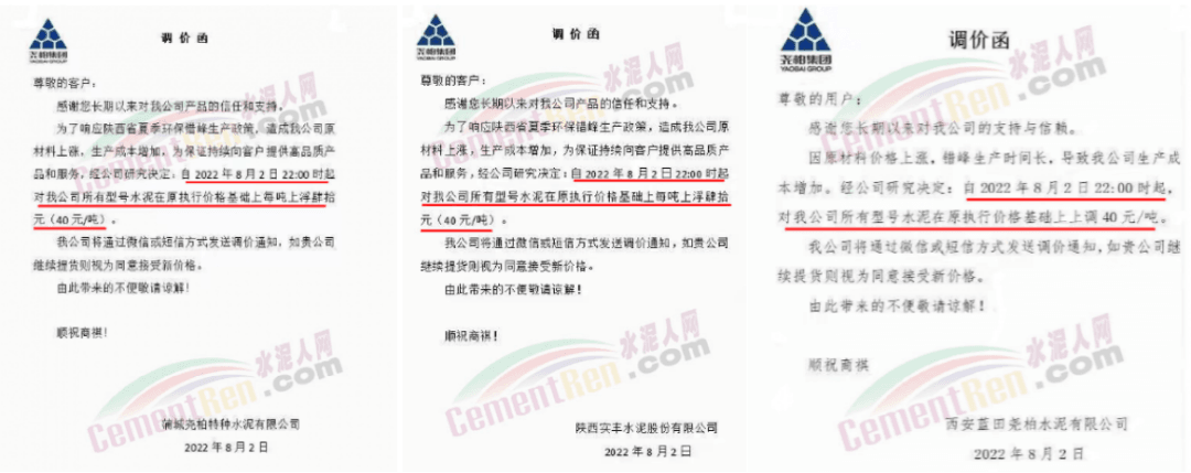 據(jù)了解甘肅、內(nèi)蒙、寧夏多區(qū)域民建市場需求較旺。因前期售價(jià)相對較低,甘肅圓特供應(yīng)鏈管理服務(wù)公司通知,自8月2日起對32.5級品種水泥價(jià)格上調(diào)10元/噸,客戶若派車提貨視為認(rèn)同本次漲價(jià)。