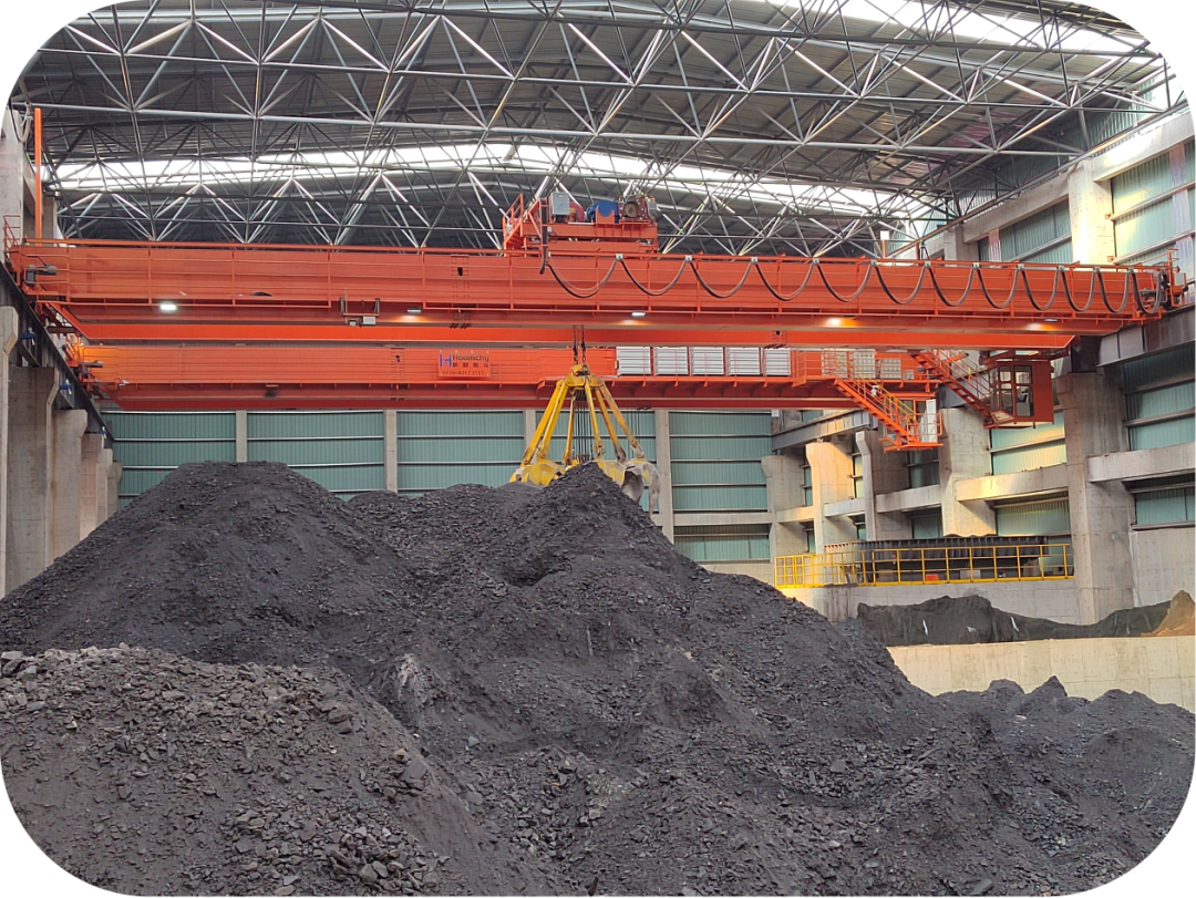 與通用抓斗抓取的其它單一物料不同,聯(lián)合儲(chǔ)庫(kù)內(nèi)物料由不同類(lèi)型固體物混合構(gòu)成,根據(jù)不同的物料特性,杭起智能做了不同的解決方案。如在南方雨水較多的地區(qū),脫硫石膏的含水率高,導(dǎo)致物料黏著的特性,杭起智能采用的是多瓣抓斗以及對(duì)抓斗形態(tài)和表面的特殊處理,以防止黏料的情況發(fā)生,在北方的干燥的環(huán)境下,物料松散,則可以采用雙瓣抓斗,雙瓣抓斗具有清倉(cāng)能力好,機(jī)械結(jié)構(gòu)穩(wěn)定的特點(diǎn)。