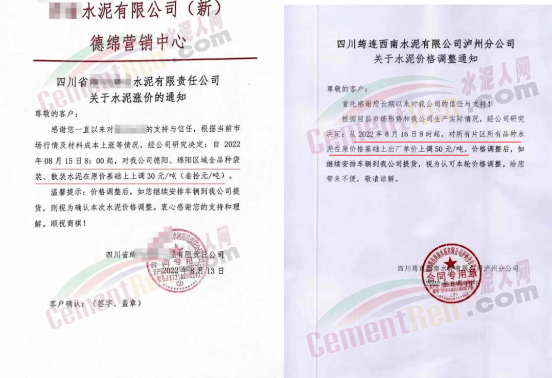 四川區(qū)域西南水泥旗下兩家企業(yè)發(fā)《緊急告知函》稱,由于四川省持續(xù)高溫天氣,電力供需緊張形勢(shì)進(jìn)一步加劇,四川省經(jīng)濟(jì)和信息化廳與國(guó)網(wǎng)四川省電力公司聯(lián)合下發(fā)紅頭文件。要求確保民生用電,工業(yè)電力用戶于2022年8月15日0:00至20日24:00時(shí)期間放高溫假,讓電于民、保障民生。鑒于此,公司將全面停產(chǎn),且無法保障客戶正常水泥使用需求。