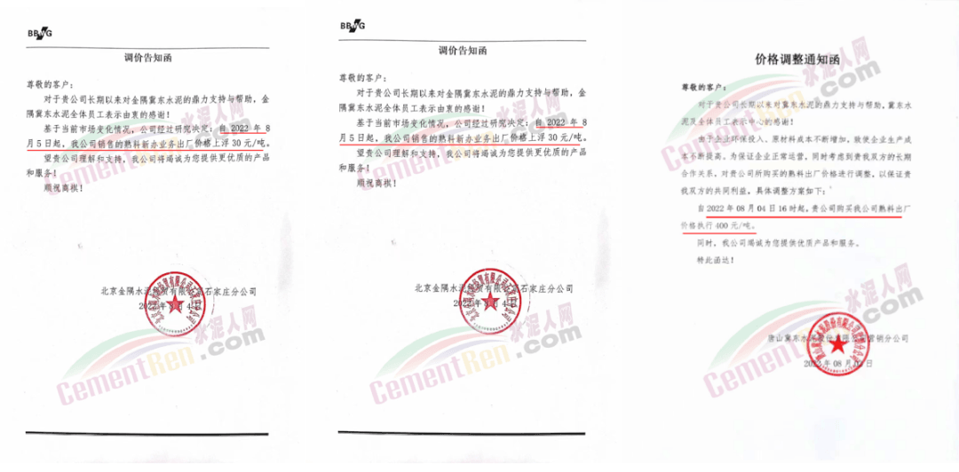 金隅冀東北京公司、唐山公司、石家莊公司等熟料漲價(jià)。其中北京金隅、石家莊金隅熟料價(jià)格上浮30元/噸,唐山冀東熟料報(bào)價(jià)400元/噸。