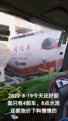 8月19日早晨,在河南同力排隊(duì)的司機(jī)表示:“前面只有4部車,8點(diǎn)水泥還要漲價(jià),下料慢慢的”。