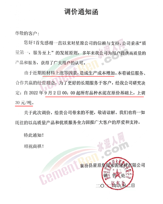 自8月下旬大集團(tuán)高管北京開會(huì)之后,北方多區(qū)域便出現(xiàn)了調(diào)漲的態(tài)勢。9月1日,北京、天津、河北、山西、寧夏、甘肅、山西等多地主要品牌企業(yè)發(fā)函調(diào)漲。北京金隅發(fā)河北承德區(qū)域水泥價(jià)格更是一次性上調(diào)了130元/噸。