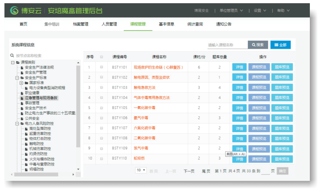 安培魔盒內置專業(yè)、權威、系統(tǒng)的視頻課件與考核題庫,滿足不同專業(yè)、崗位、層級的人員培訓與考核。