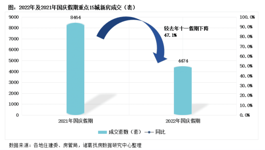 根據(jù)相關監(jiān)測數(shù)據(jù),重點15城新房成交4474 套,較去年十一假期下降 47.1%。
