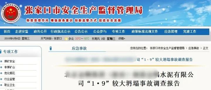 2018年1月9日,河北張家口市某水泥公司在進(jìn)行3#水泥儲(chǔ)存庫清庫作業(yè)時(shí),倉壁板結(jié)水泥及料粉大量塌落,造成清倉工程外委單位某公司6名現(xiàn)場(chǎng)作業(yè)人員死亡,直接經(jīng)濟(jì)損失約599萬元。