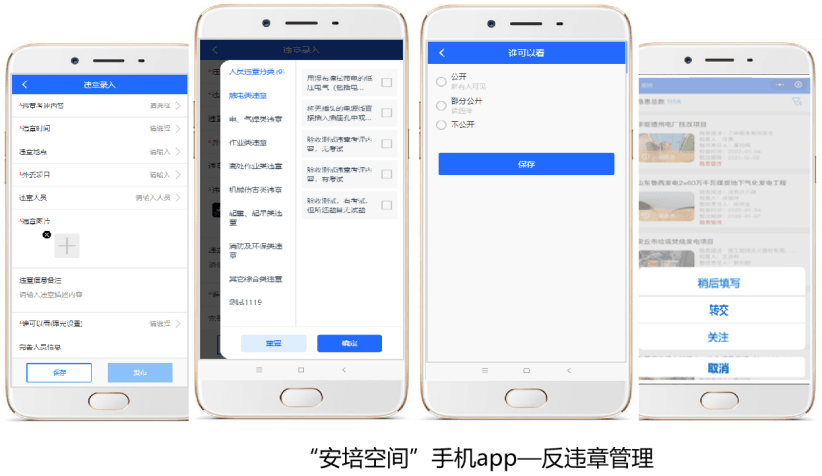 “安培空間”手機(jī)app 為現(xiàn)場(chǎng)管理人員提供移動(dòng)管理工具,標(biāo)準(zhǔn)化錄入違章,違章記分自動(dòng)減扣,并自動(dòng)向違章人員推送反違章培訓(xùn)任務(wù)。嚴(yán)重違章者(違章記分>12分)禁止入廠。